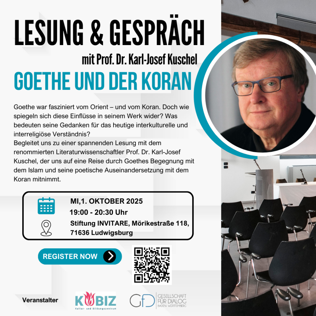 Begleitet uns zu einer spannenden Lesung mit dem renommierten Literaturwissenschaftler Prof. Dr. Karl-Josef Kuschel, der uns auf eine Reise durch Goethes Begegnung mit dem Islam und seine poetische Auseinandersetzung mit dem Koran mitnimmt.