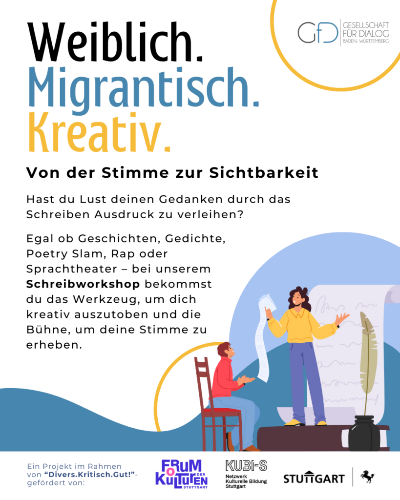 Du bist eine junge Frau zwischen 18 und 28 Jahren, hast eine Migrationsgeschichte und Lust, dich kreativ auszudrücken? Dann ist Weiblich. Migrantisch. Kreativ. – Von der Stimme zur Sichtbarkeit genau richtig für dich!