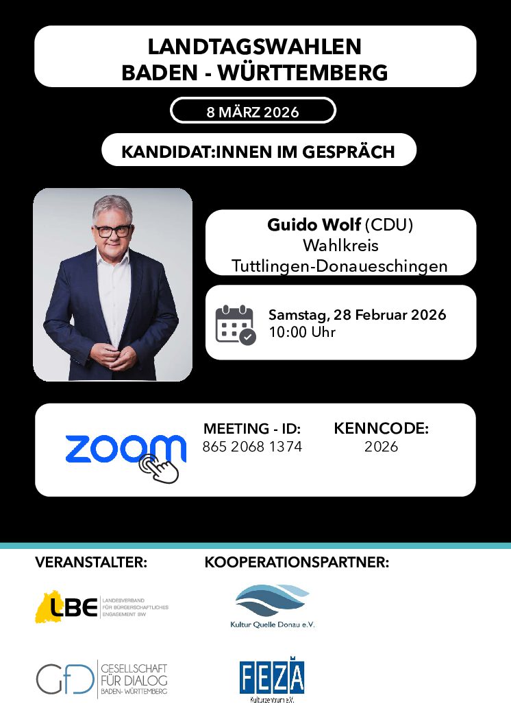 In Vorbereitung auf die Landtagswahlen am 08. März 2026 wird es die Möglichkeit geben ins Gespräch mit dem Guido Wolf von der CDU Tuttlingen-Donaueschingen zu kommen.